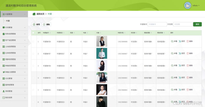 通过这些功能模块的整合,Spring Boot潘龙村数字化综合管理系统能够有效提升乡村治理的效率与透明度,增强村民的参与感和满意度,为乡村的可持续发展提供有力的技术支撑。