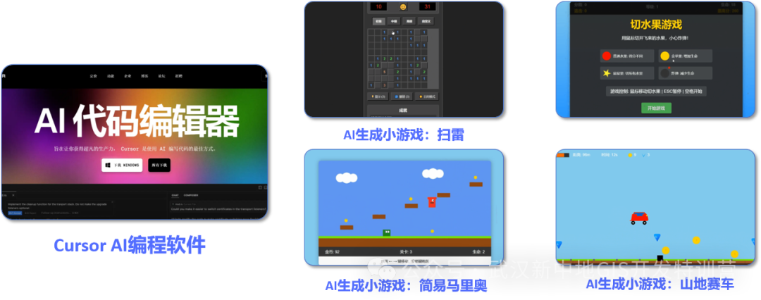 使用cursor进行AI编程教学,实现“智能代码补全”、“自然语言编辑”、“代码库理解”、“实时错误检测修复”、“多文件编辑”等,功能十分强大。新中地手把手保姆式教学,帮助学生快速提高提升编程效率,快速利用AI编程工具生成完整的项目。