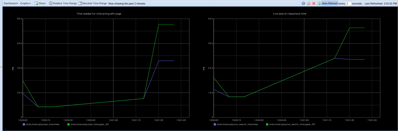 测量时间可以用于预测系统行为,比较不同分支或场景下的性能。除了使用pytest-play自带的上述方式外,也可以安装pytest-statsd插件和StatsD、Graphite-Web集成达到该目的。