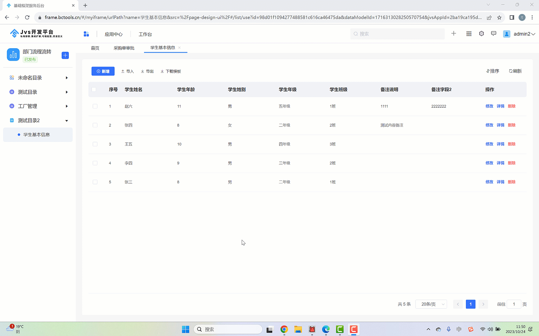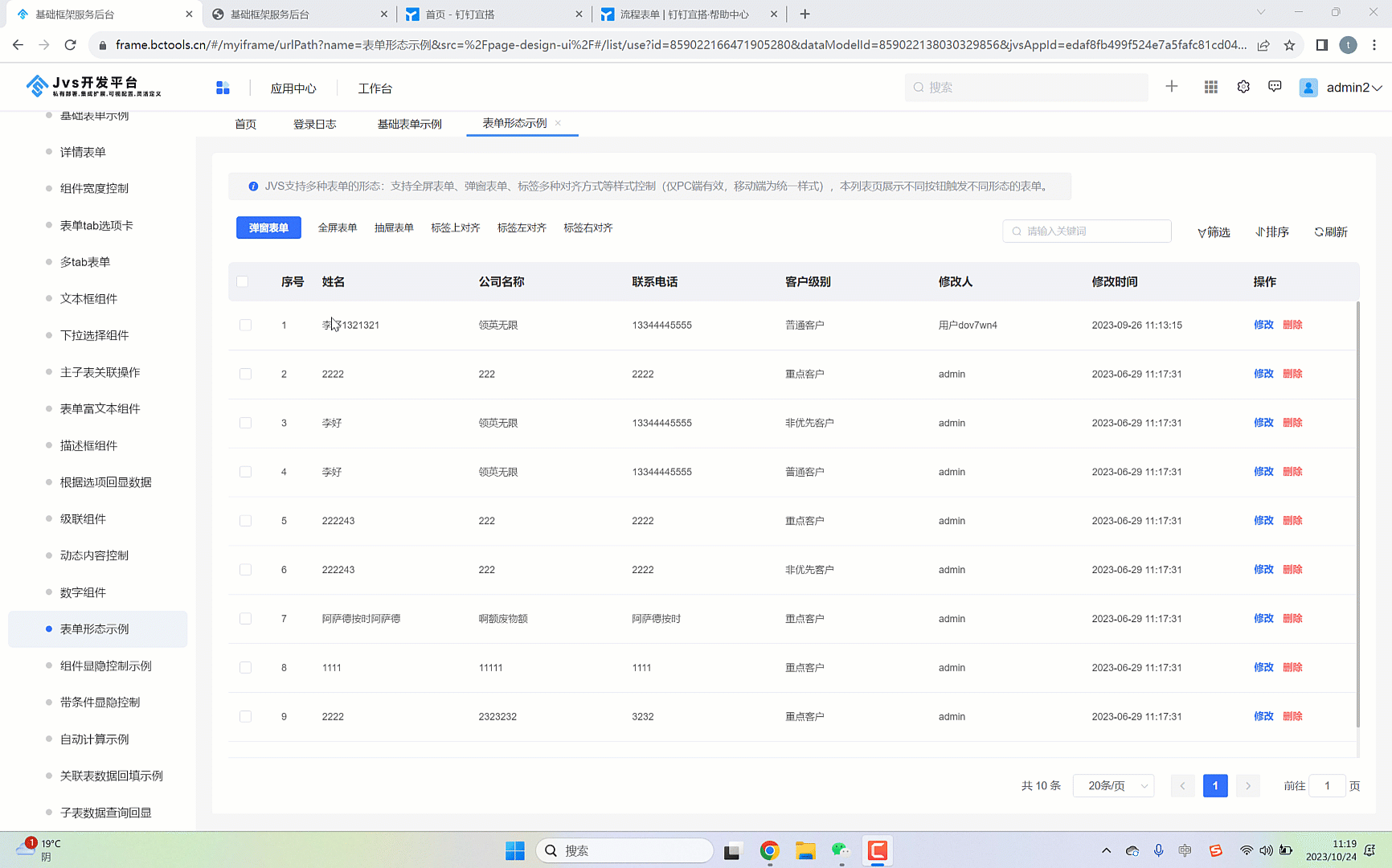 - 独立表单即在菜单目录下直接创建独立页面,页面可以做数据录入,如下图所示,这种表单都是全屏展示