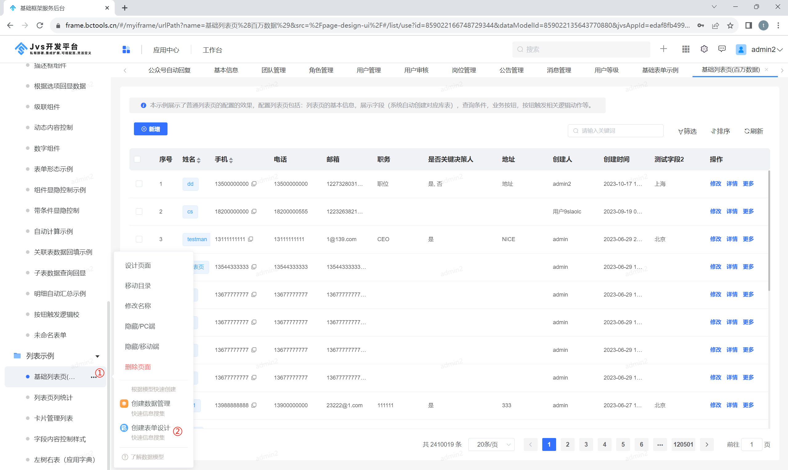 也可以通过选择某个列表页,悬空“...”省略号,在弹出菜单上,点击创建表单设计,也可创建独立表单