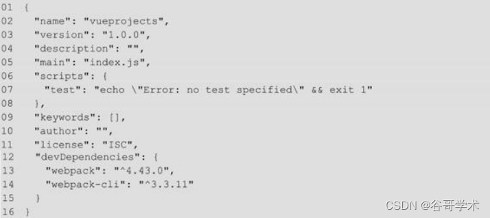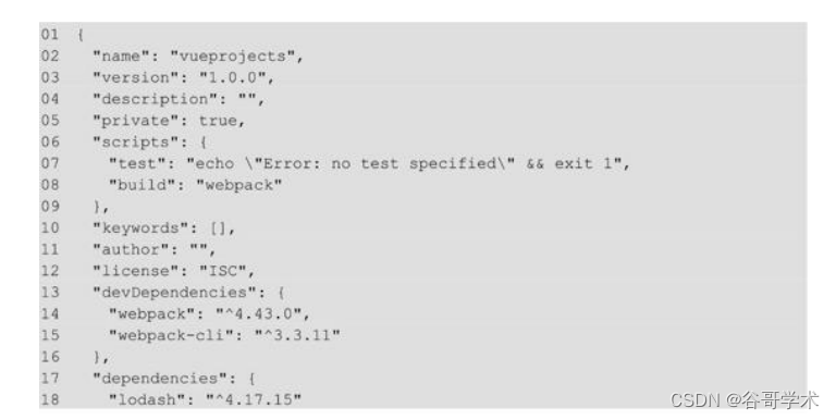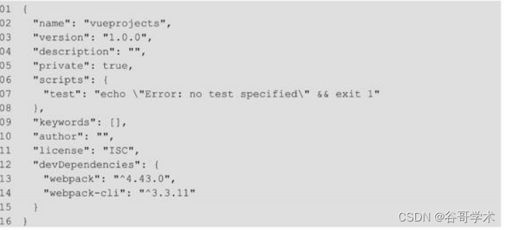 第12~15行代码中的“de?De?endencies”字段用于定义开发调试