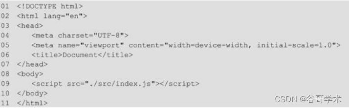 第0?行代码中,通过<scri?t>标签引入了index.js脚本文件。