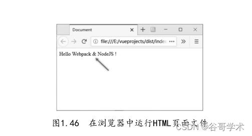如图1.46中的箭头所示,浏览器页面中显示了index.js脚本代码
