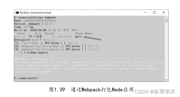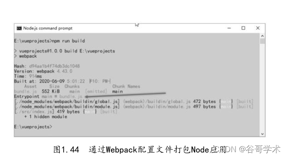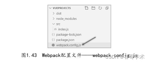 如 图 1.43 中 的 箭 头 所 示 , 将 Webpack 配 置 文 件