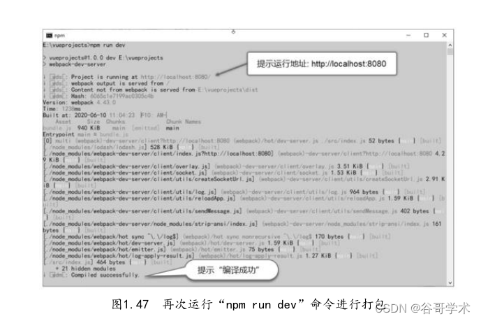 然后,通过直接运行“npm run dev”命令就可以执行打包操作