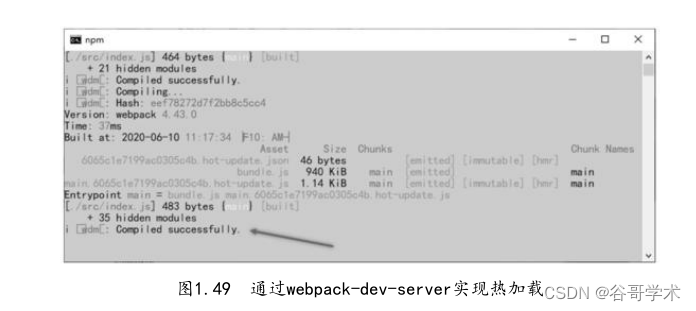 如图1.44中的箭头所示,通过Webpack打包后自动重新生成了