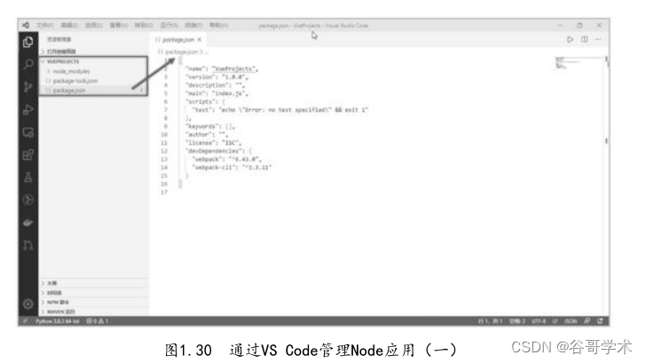 再次返回图1.30中,箭头标识的是package.json配置文件的内