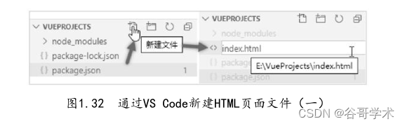 序根目录(vueprojects)上单击快捷方式“新建文件”图标,效果如