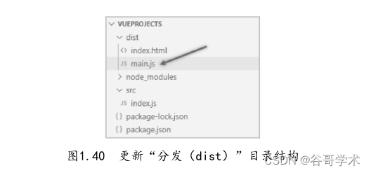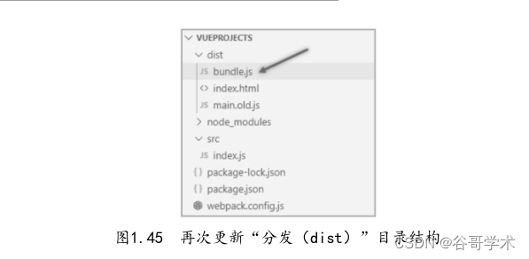 如图1.45中的箭头所示,在“分发(dist)”目录下自动生成了