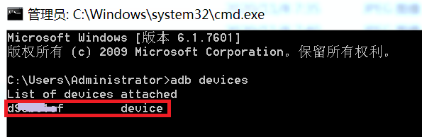 adb devices命令,看是否能找到自己的手机,比如下图所示就是成功的结果了
