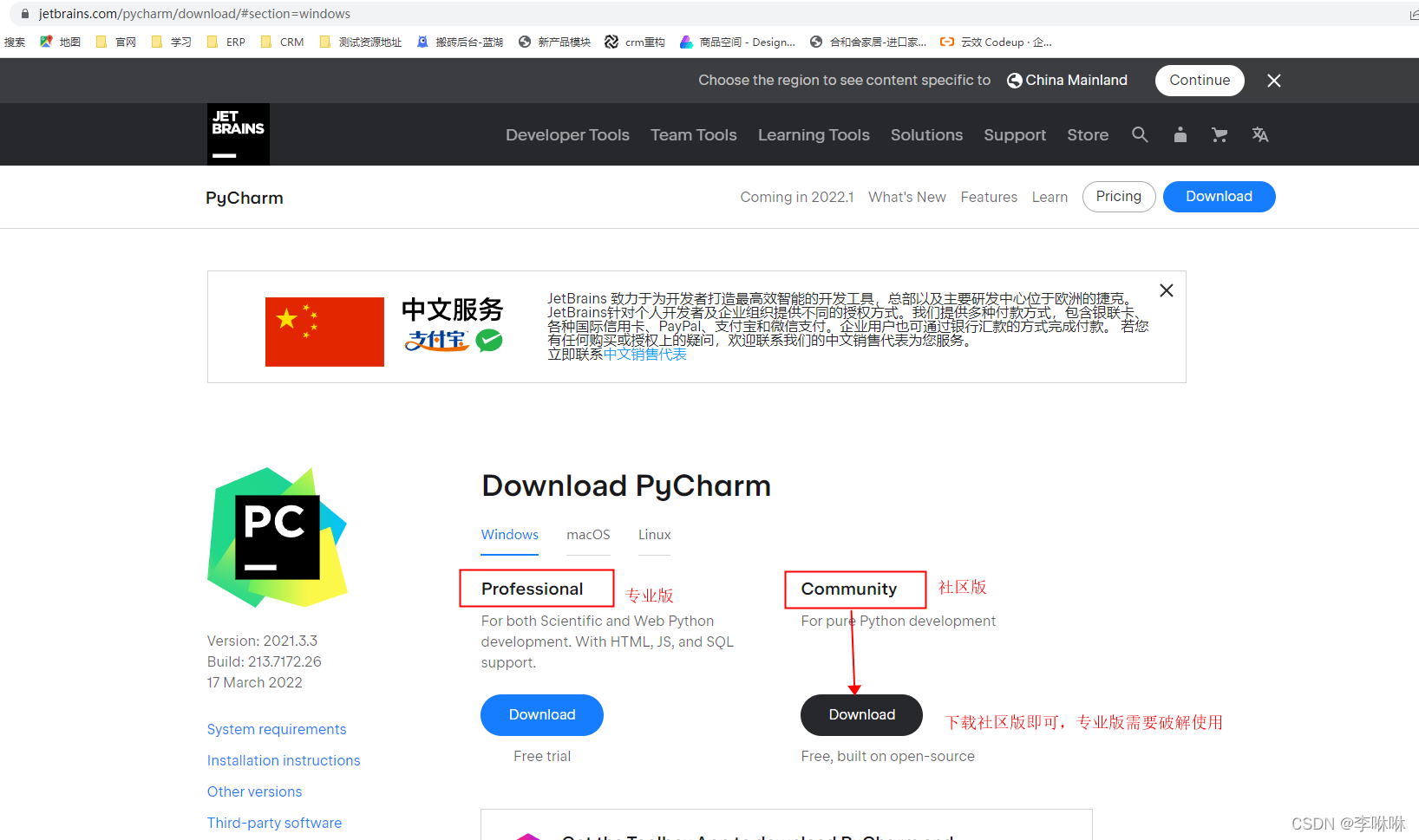 官网下载地址:Download PyCharm: Python IDE for Professional Developers by JetBrains