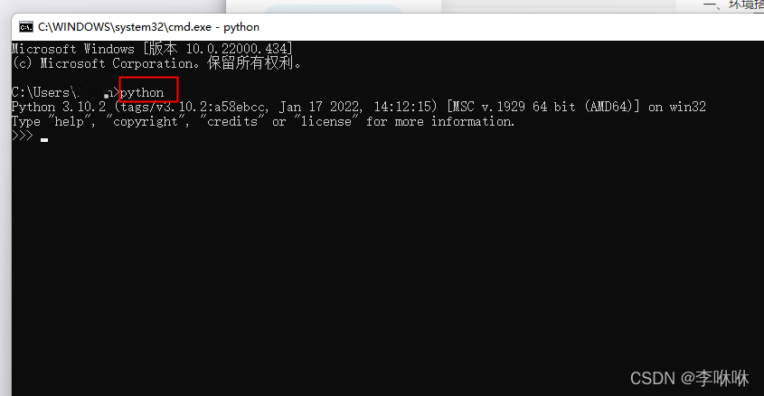 安装好之后,进入CMD窗口,输入python指令,如图所示即表示python安装成功!
