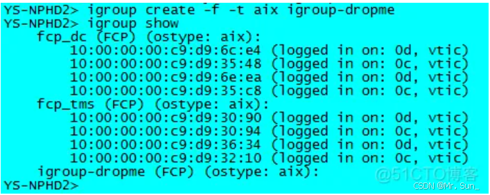 YS-NPHD2>igroup create –f –t aix igroup-dropme