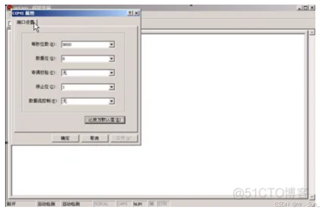 打开windows里的超级终端,设置为default: 9600波特率/8位/无校验/1位停止位,