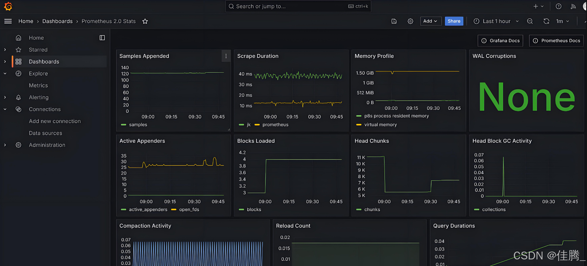 title:仪表盘的标题。panels:仪表盘包含的面板列表。panels[0].title:面板的标题。panels[0].type:面板的可视化类型,这里是graph(折线图)。panels[0].datasource:面板使用的数据源。panels[0].targets[0].expr:面板的查询表达式,即 PromQL 查询语句。panels[0].yaxes[0].format:Y 轴的单位格式,这里是秒。panels[0].yaxes[0].label:Y 轴的标签。