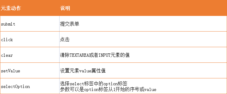 表单元素自动化包括检测元素状态,点击,输入文本,选择列表项等,详细看下面函数列表