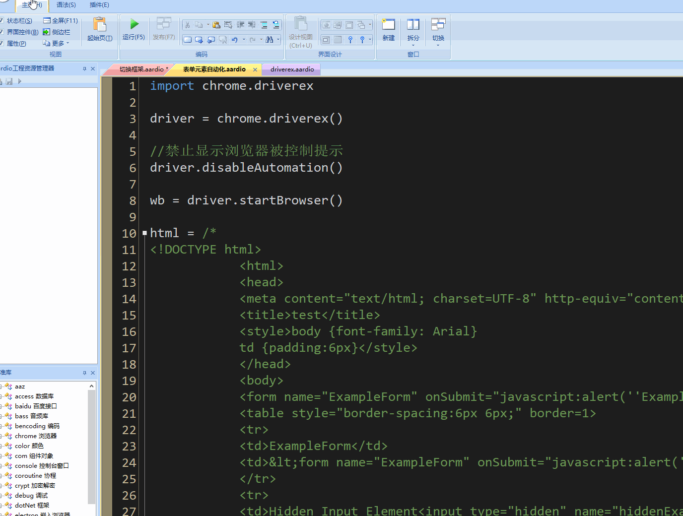 aardio 谷歌浏览器自动化 (八) 表单元素自动化表单元素自动化包括检测元素状态,点击,输入文本,选择列表项等