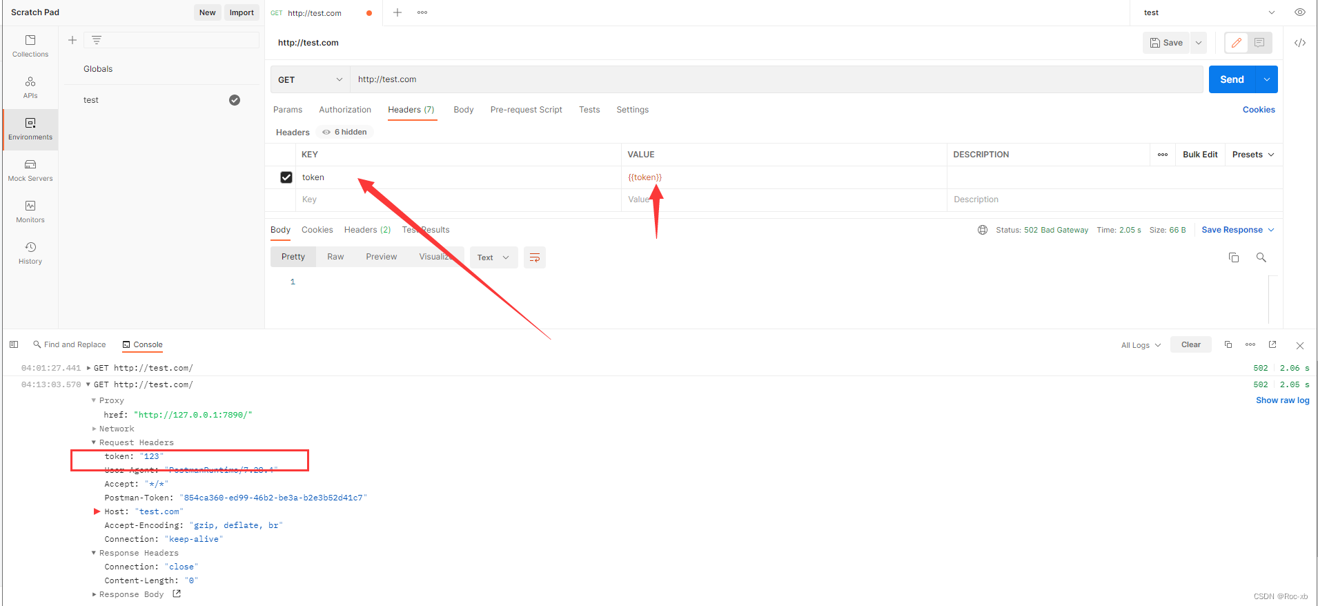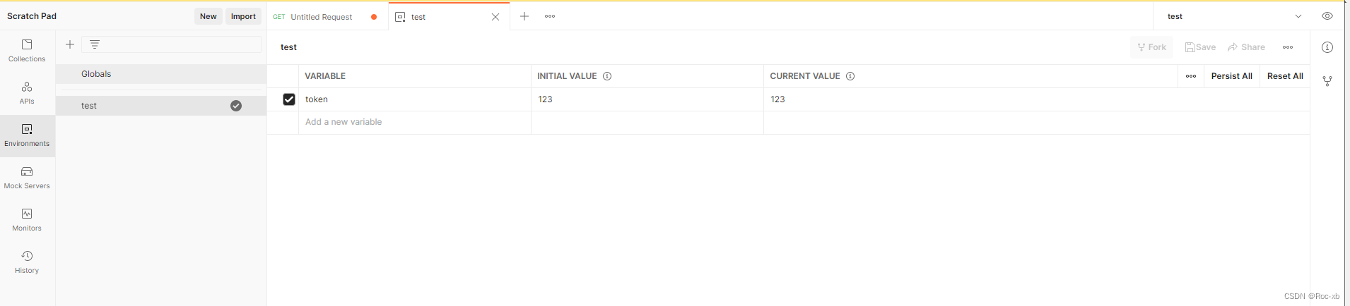 首先添加一个环境变量:token:123