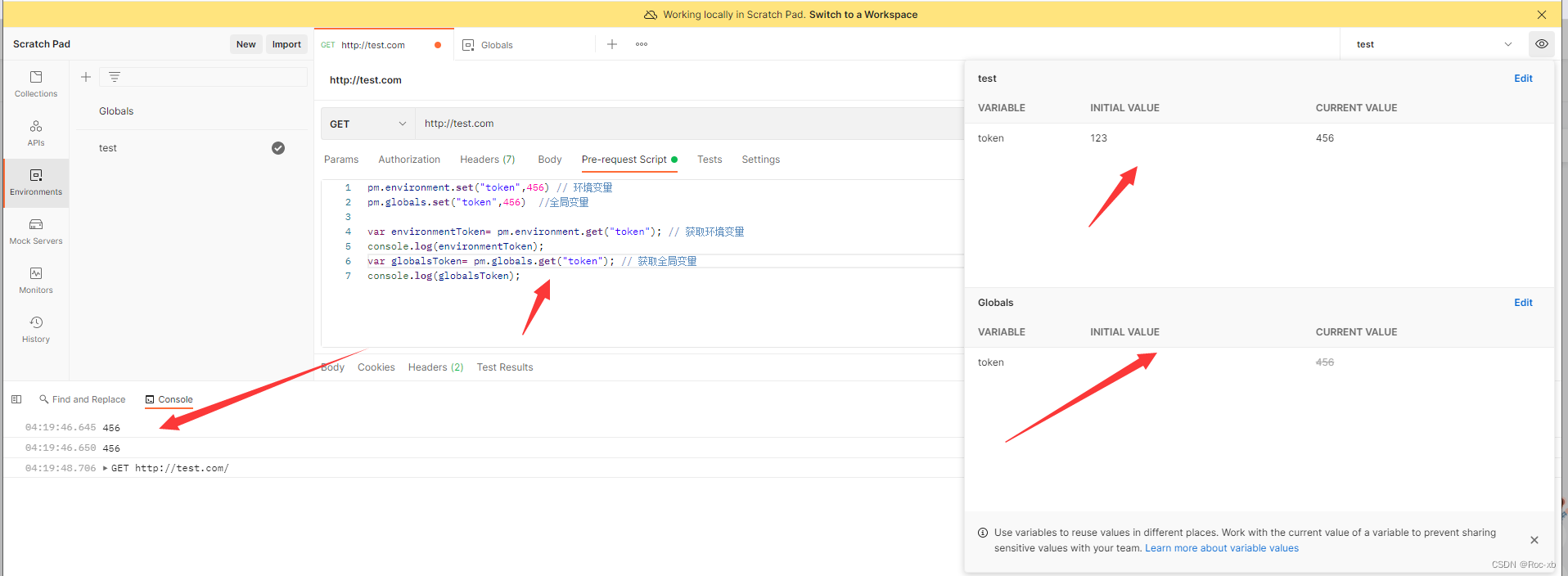 pm.globals.set("token",456) //全局变量