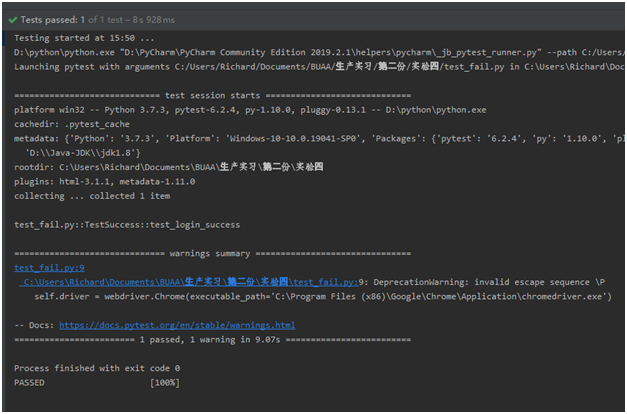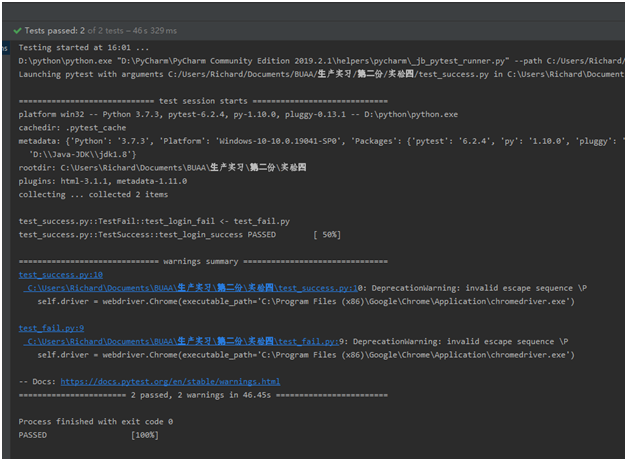 通过测试报告,可以很直观的看到测试结果,在用户名与密码正确与错误的情况下,网站都能够通过测试。