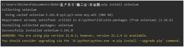 在命令行中利用pip命令安装Selenium(如图48所示)。