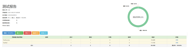 得到组团运行的通过率为100%(两种情况测试均能够通过)(如图54所示)。