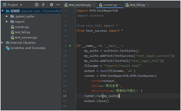 新建runner.py测试文件,利用HTMLTestRrportCN生成相应测试报告(如图56所示)。