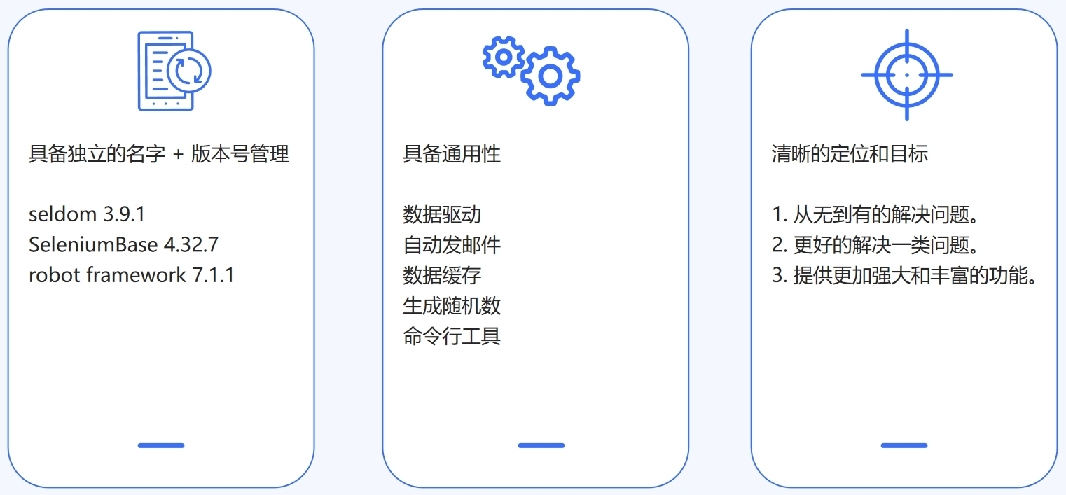 自动化测试框架被设计的初衷一定是为更好的了解决某一类问题。在设计之初,我们应该有一个清晰的目标和定位。