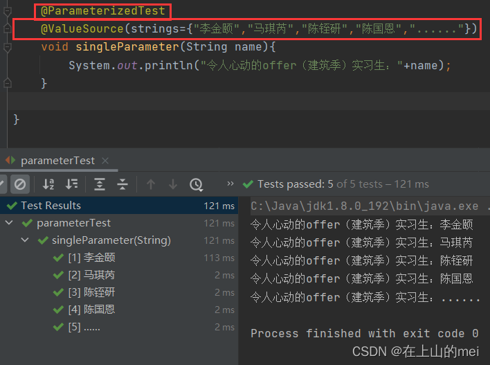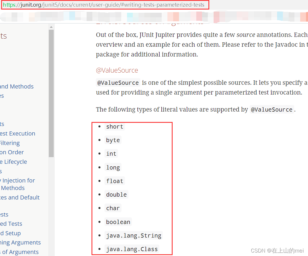 1.单参数:@ValueSource(类型={参数1,参数2})