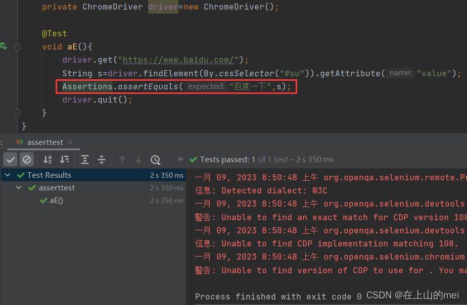 而如果使用断言,我们不但能知道上述测试结果,还能根据断言的的结果直接找到问题所在。即如果断言结果是失败的话,就会在控制台有expect和actual的结果,通过这个结果你就知道具体问题出在哪里了。因此断言能帮我们更快更精准的在进行自动化测试的过程中找到问题。