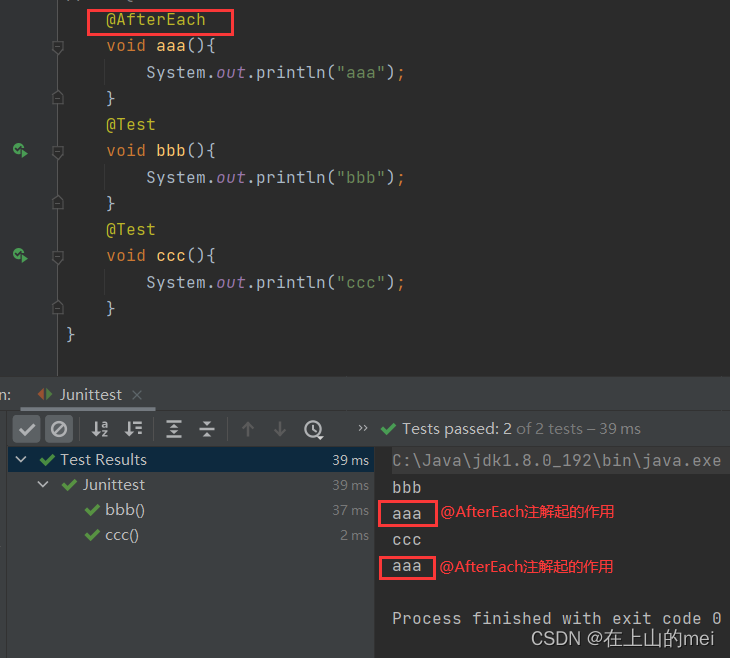 @AfterEach:被它注解的方法要在其他每个方法执行后都执行一遍