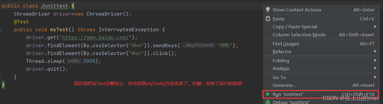那么有了这个@Test注解后,我们就可以不创建这样专门的运行入口的类啦