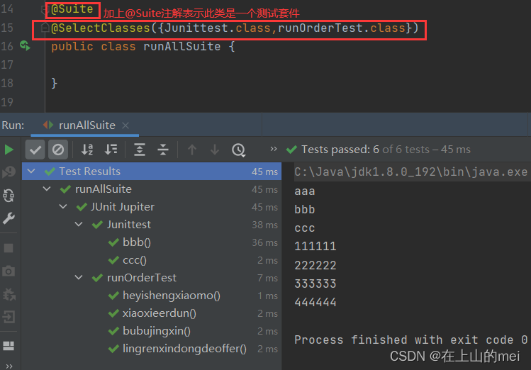 第一步首先先在作为测试套件的类上加上@Suite注解,用来表明这个类是一个测试套件