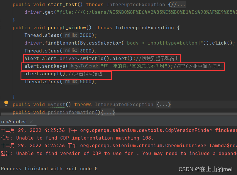 注意哈,你有可能照着我这个例子打,然后运行之后发现报错,莫慌莫慌,一般你再重新运行一两遍就好了。原因就是我选的这个元素啊它有时候会小小的变一下他的cssSelector,比如从#32变到#31,所以你代码里cssSelector复制的是#32的,但是可能某次运行的时候,这个元素它变成了在页面上的#31位置,所以找不到是正常滴。之所以说让你再运行一遍,是因为下次这个元素可能就又回到#32位置了哈哈哈哈,你懂我意思么~