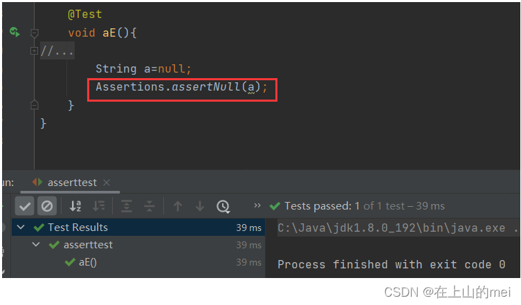assertNull():校验参数是否为null,若是则断言结果为成功