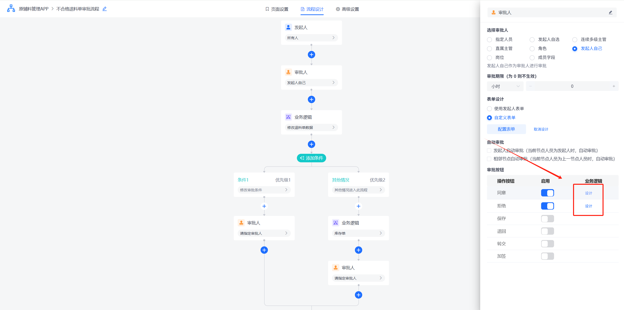 有两种场景可以设置为自动审批,a当节点中存在发起人的时候,b 相邻审批人为同一人的时候,可以设置自动审批
