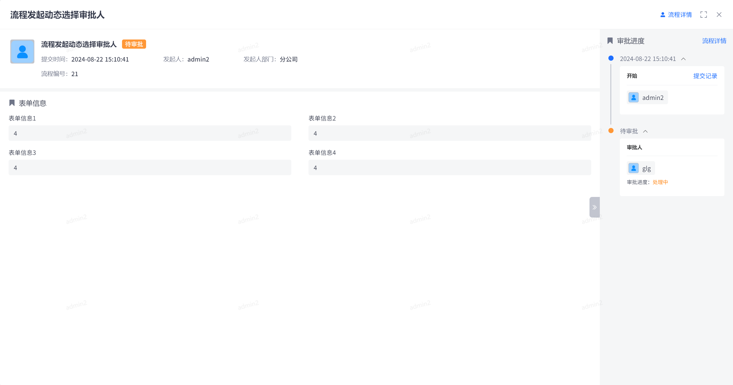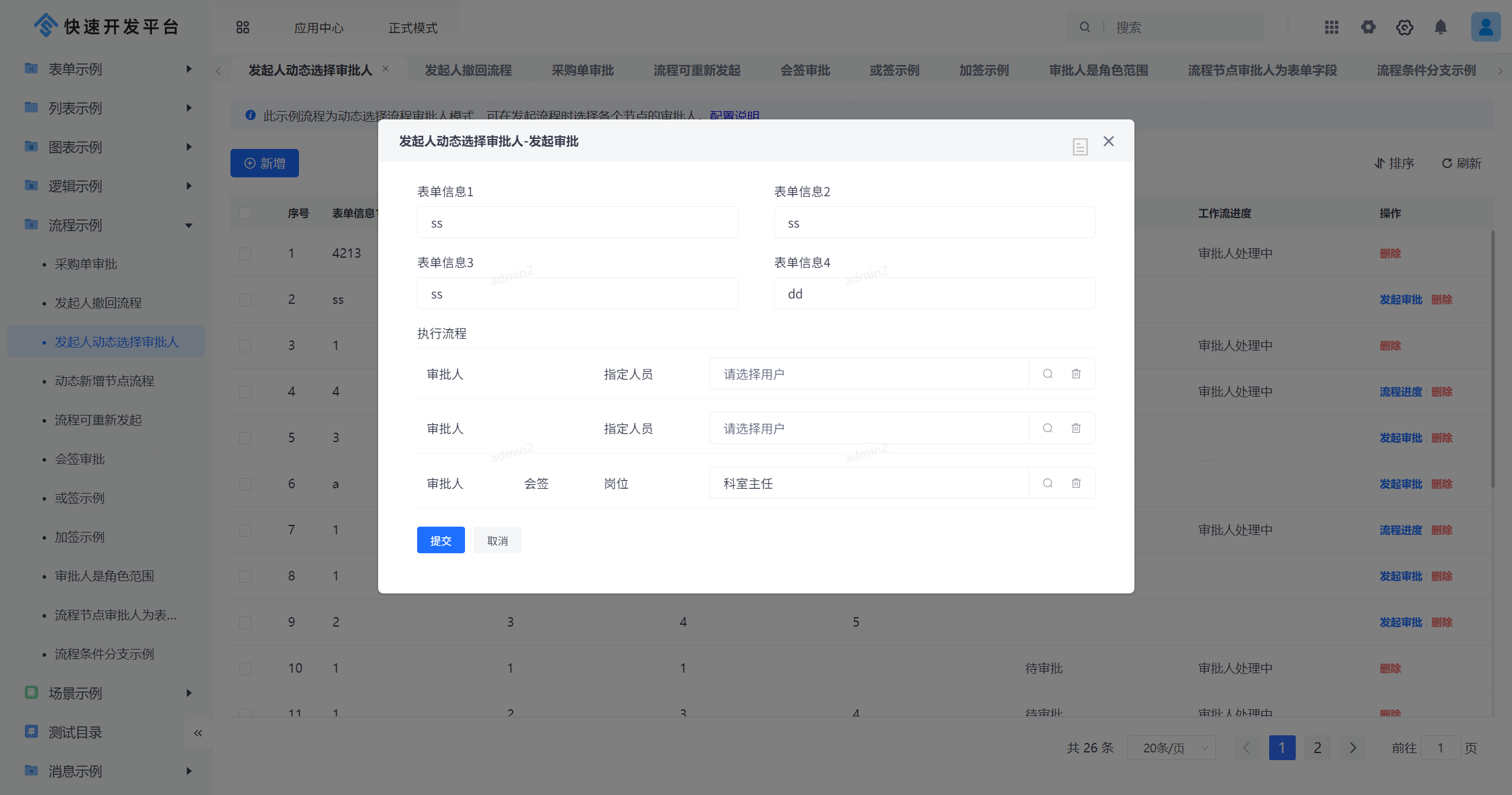 ⑤:动态选择审批人设置:可以在发起流程时界面上选择/修改审批处理的人员;