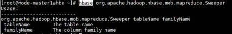 hbase org.apache.hadoop.hbase.mob.mapreduce.Sweeper t1 cf1