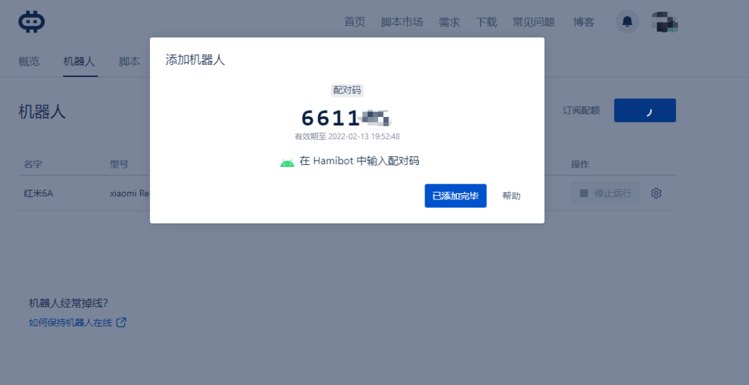 首先,我们在 PC Web 的控制台添加一个机器人,然后使用手机通过「 配对码 」进行配对,接着从脚本市场选择一个功能脚本导入,最后在控制台运行脚本就可以在手机上运行一系列自动化操作了