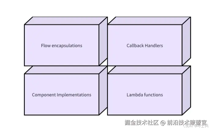 在明确的组件定义基础之上,我们认为,大模型应用开发存在通用的基座性质的能力,包括但不限于:处理模型输出的流式编程能力;支持横切面功能以及透出组件内部状态的 Callback 能力;组件具体实现超出组件 interface 定义范围的 option 扩展能力。