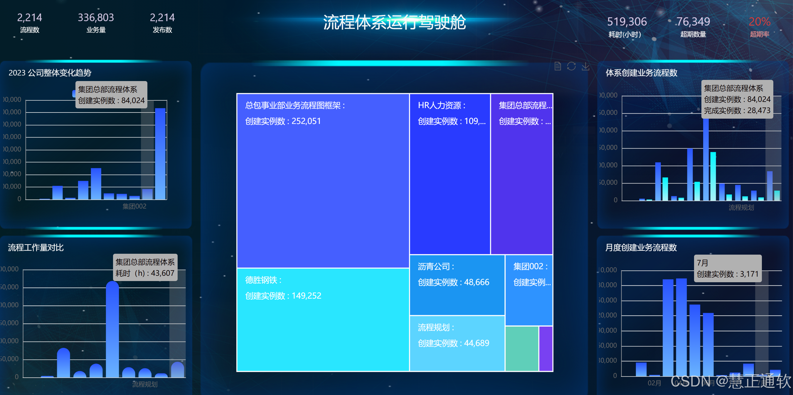 企业管理体系数字化系统运行一段时间后,积累大量的流程执行数据。可以按照流程管理体系进行多维度、深度分析,找出流程问题,评估现有流程、组织、人员价值,并通过图表的形式对流程执行数据分析和呈现,为流程优化提供参考模型。
