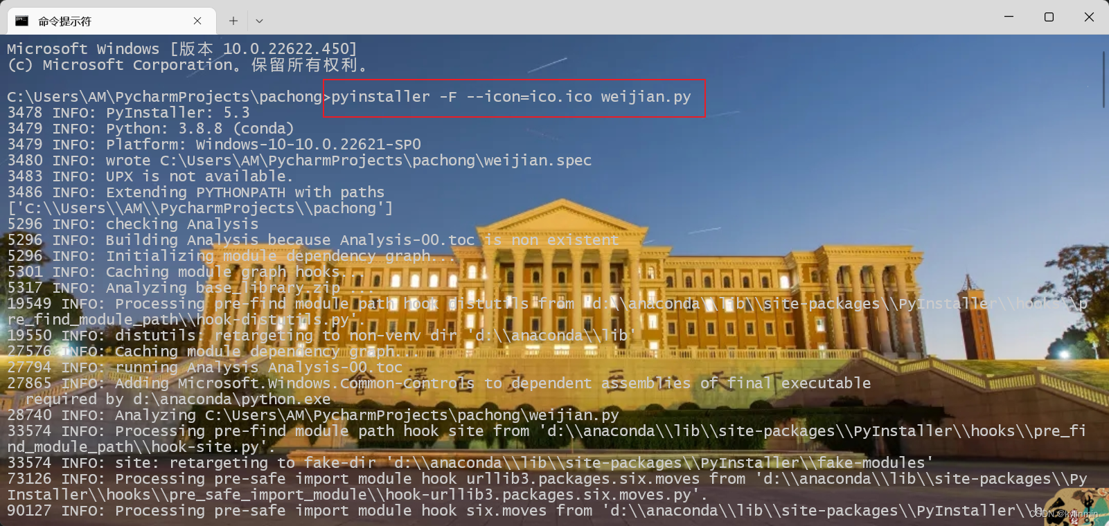 pyinstaller -Fw --icon=ico.ico weijian.py