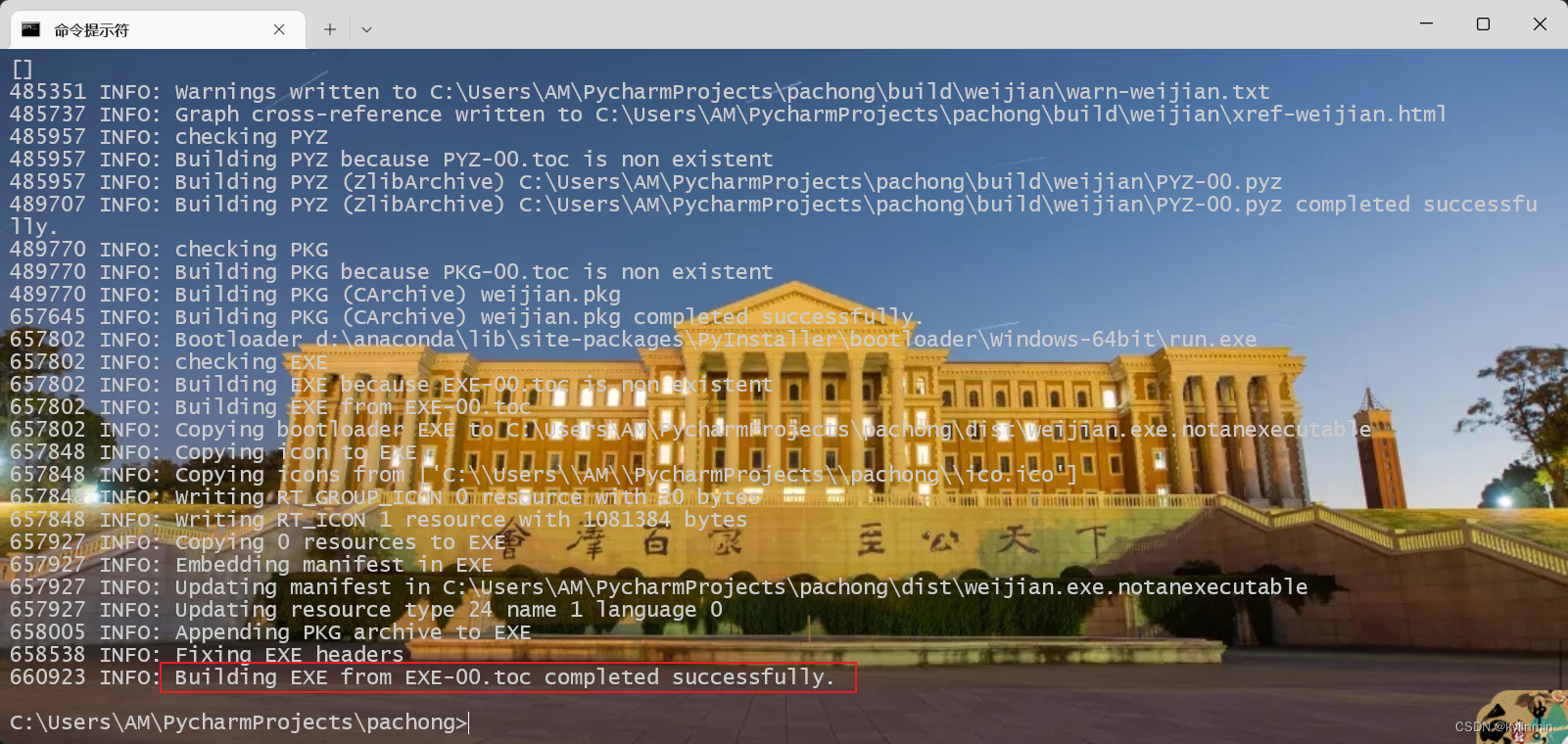 2.执行 pyinstaller打包成exe,cmd命令执行: