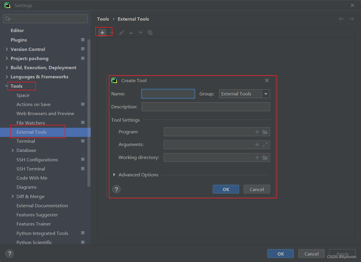 第一步:设置—–>工具—–>外部工具,点击左上角的加号