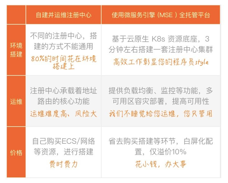 使用ZooKeeper/Nacos/Eureka 等开源项目,自建微服务注册和配置中心,但遇到较多运维难题,或投入时间较多希望能专注在业务开发的企业。