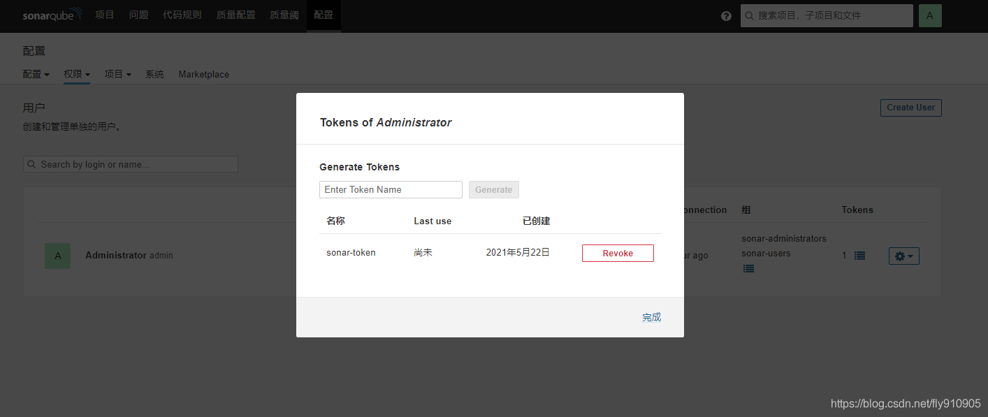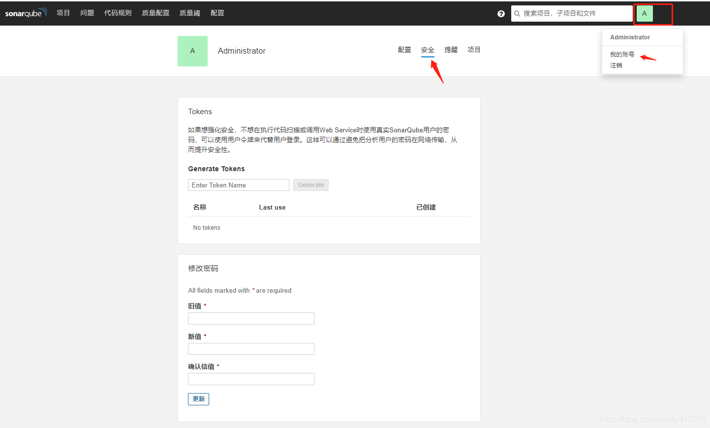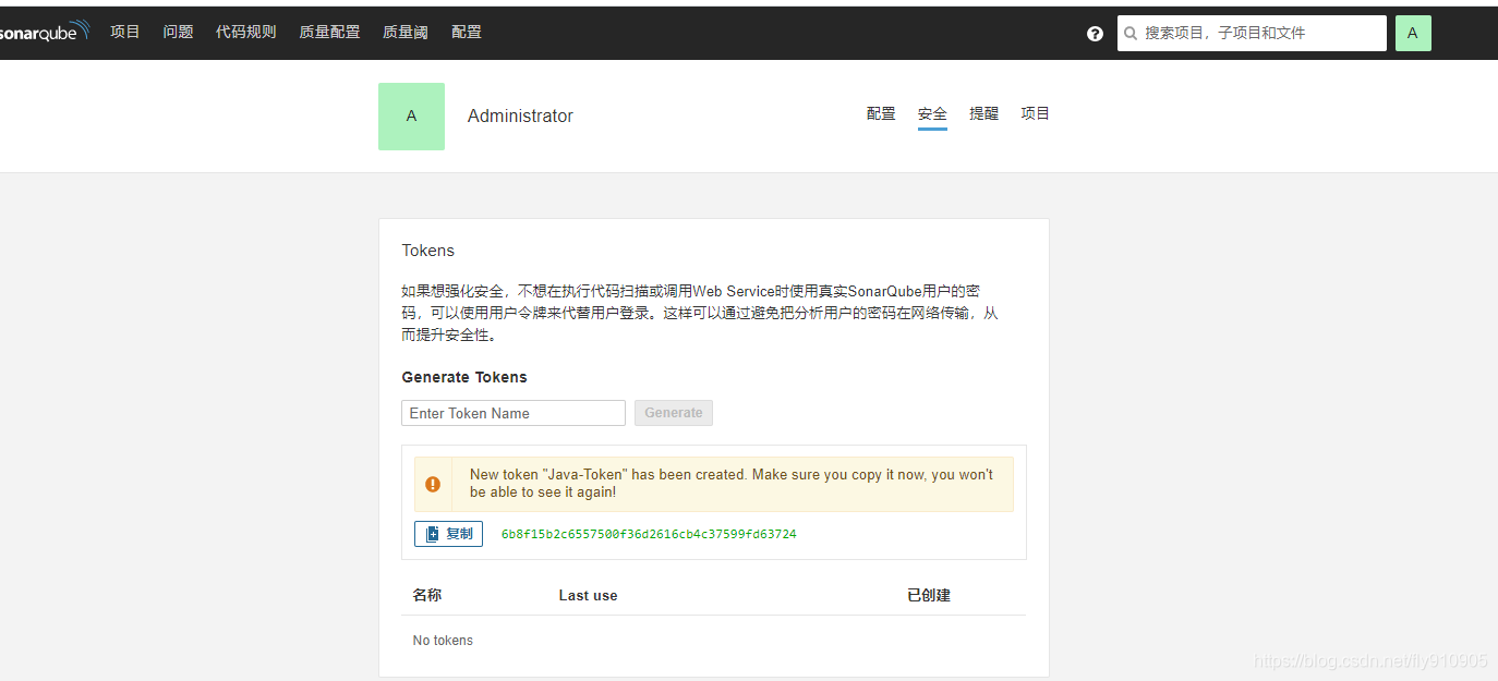 除此之外,还需要配置token,token需要在在SonarQube中生成。