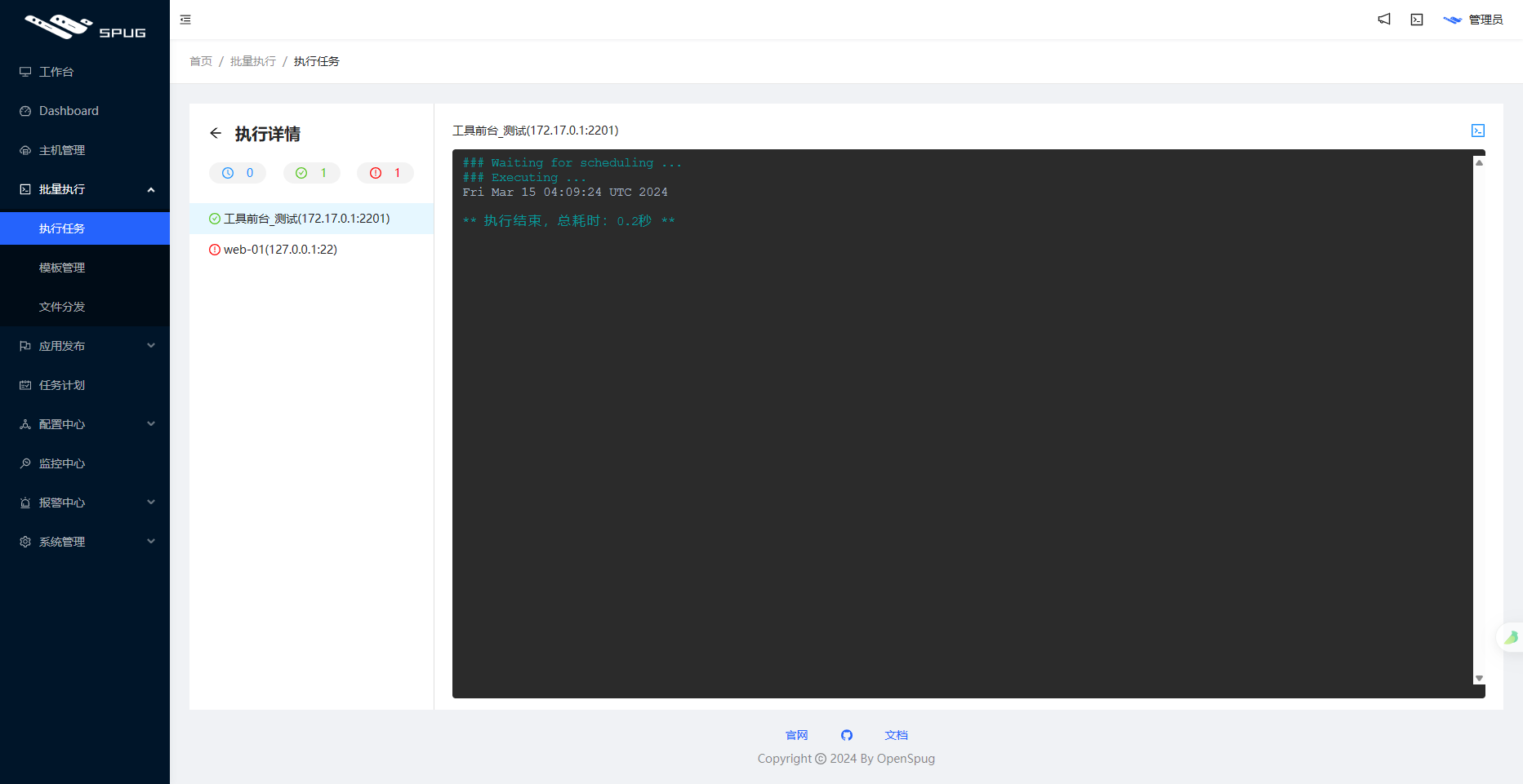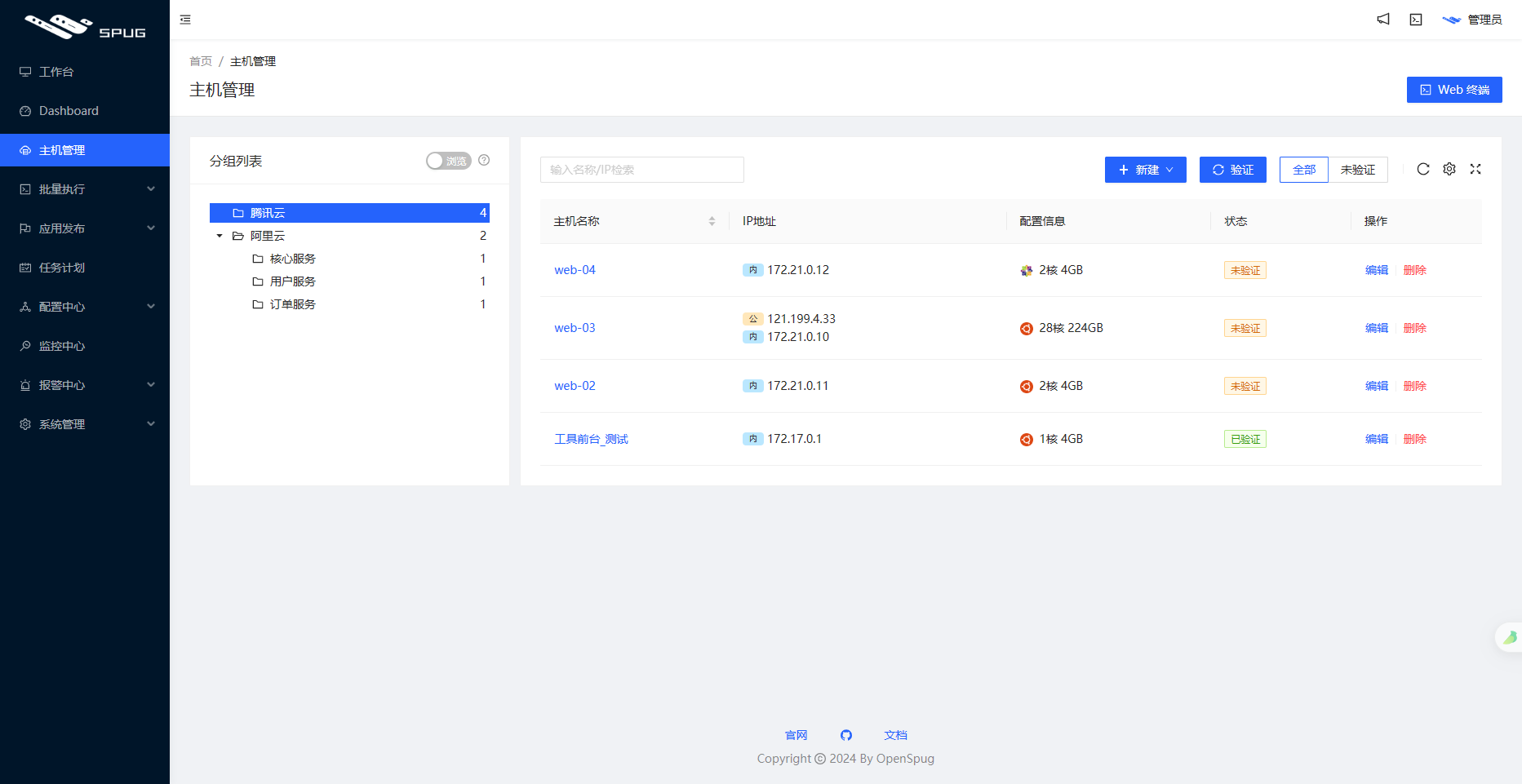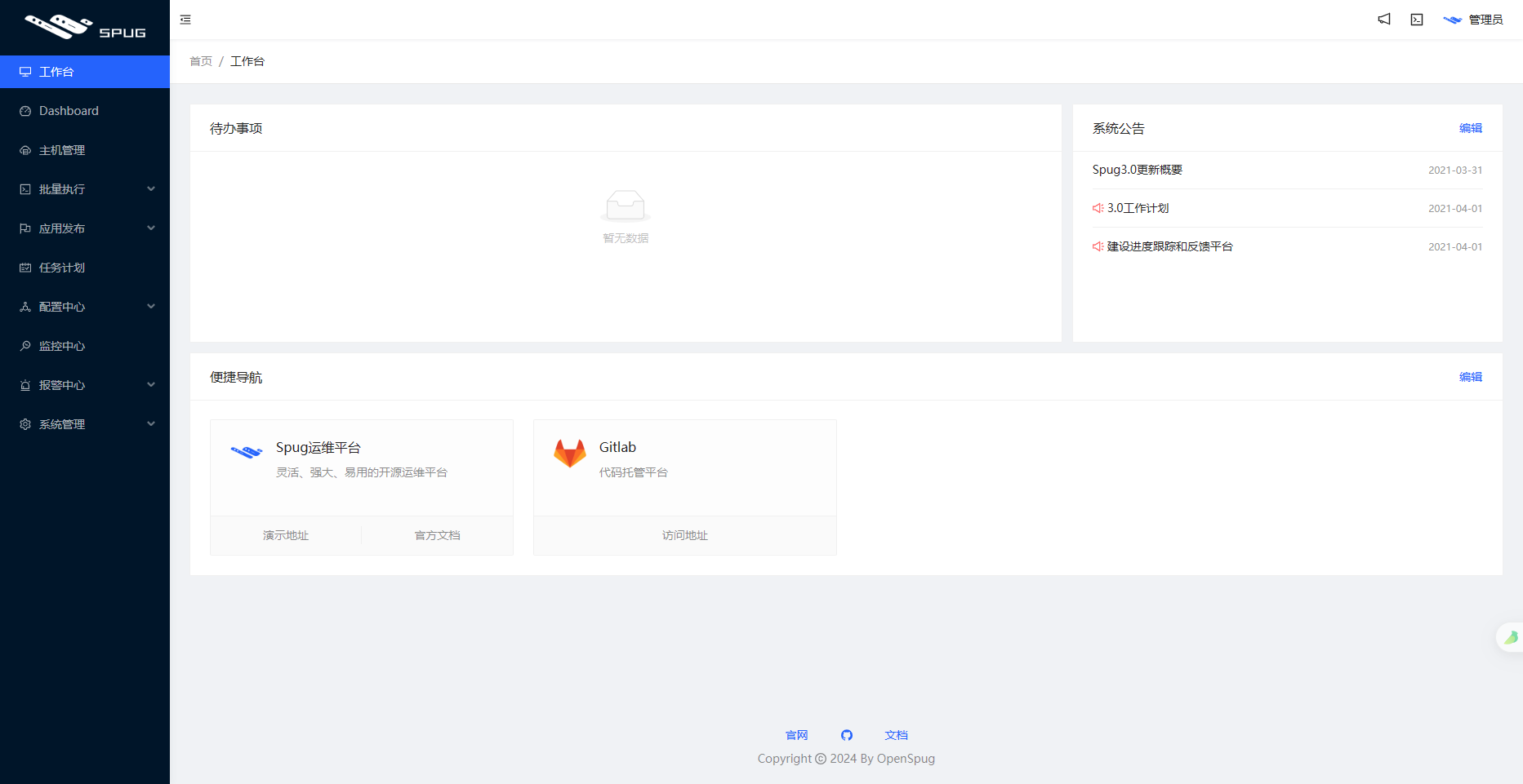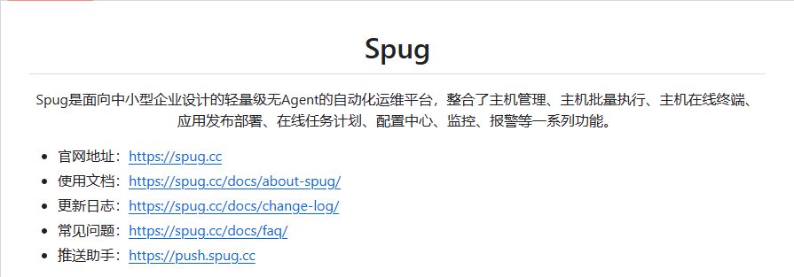 Spug是一款开源的运维管理平台,其名称源自中文中“麻雀”的意思。正如麻雀虽小却五脏俱全一样,Spug虽然简洁,却提供了完整的功能。它为中小型企业提供了全面的自动化运维解决方案。通过Spug,用户可以轻松管理主机和应用,实现自动化部署、监控、日志管理等功能,从而极大地提高了运维效率。目前在Github上拥有9.7K Star并且该项目也相对成熟,拥有完善的技术文档和部署文档。同时还配备了演示环境,