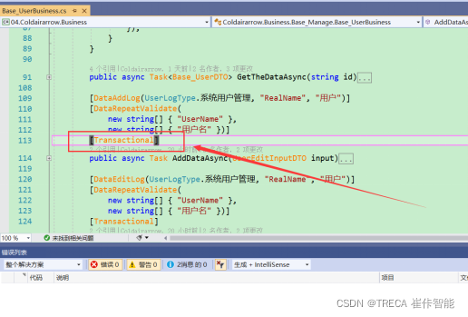BaseBusiness<Base_UnitTest> _baseBus = new BaseBusiness<Base_UnitTest>();/*推荐使用using包裹,中途出异常自动回滚并释放事务,有效防止死锁具体只需要开始事务BeginTransaction()与结束事务EndTransaction(),BeginTransaction()可传入自定义事务隔离级别*/using (var transaction = _baseBus.BeginTransaction()){ _baseBus.Insert(_newData); var newData2 = _newData.DeepClone(); newData2.Id = IdHelper.GetId(); _baseBus.Insert(newData2); //res为元组,Success表示是否成功提交,若Success为false,则会有Ex异常信息,并且自动完成回滚并释放事务 bool res = _baseBus.EndTransaction().Success;}