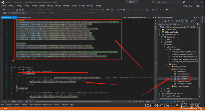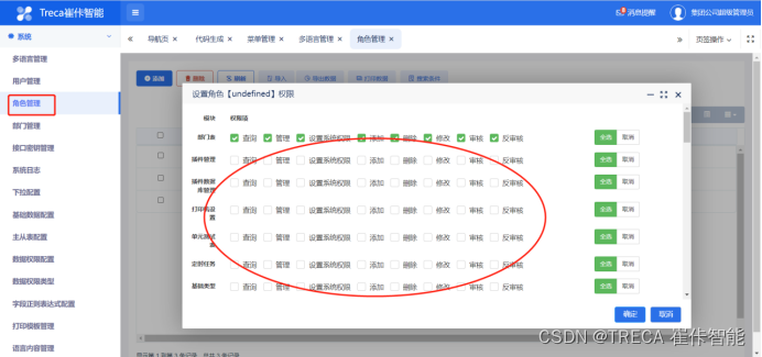 设置权限的模块、权限项是我们在生成代码勾选权限产生的。